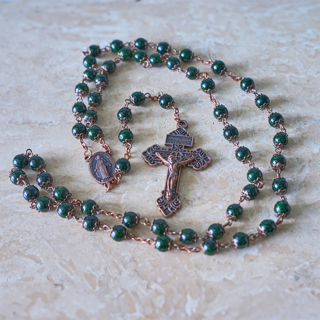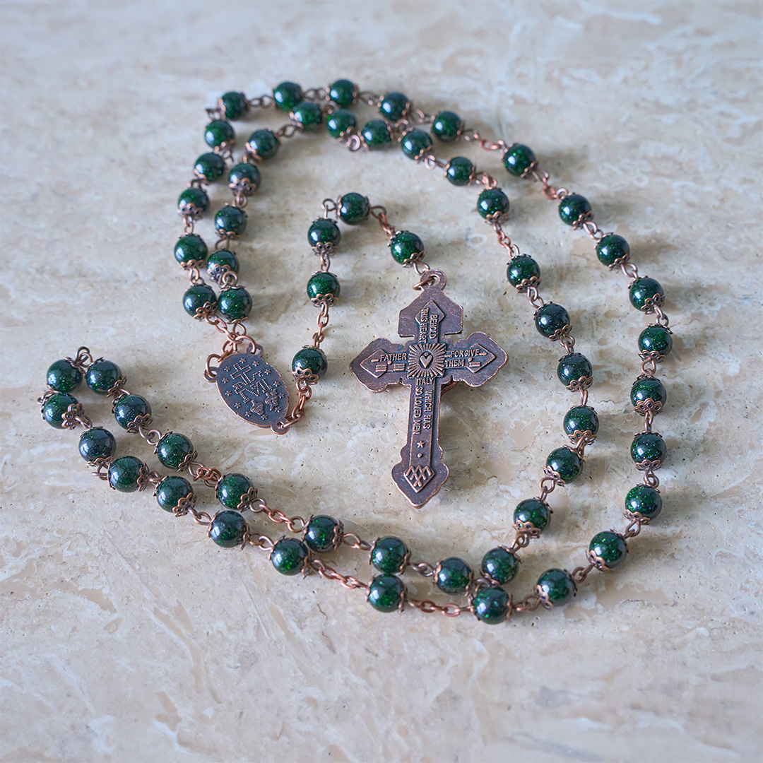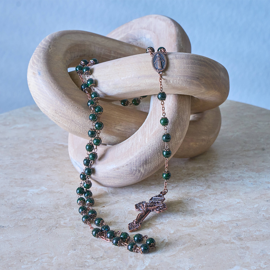 Rosario Ágata Verde Oscuro – Medalla Milagrosa